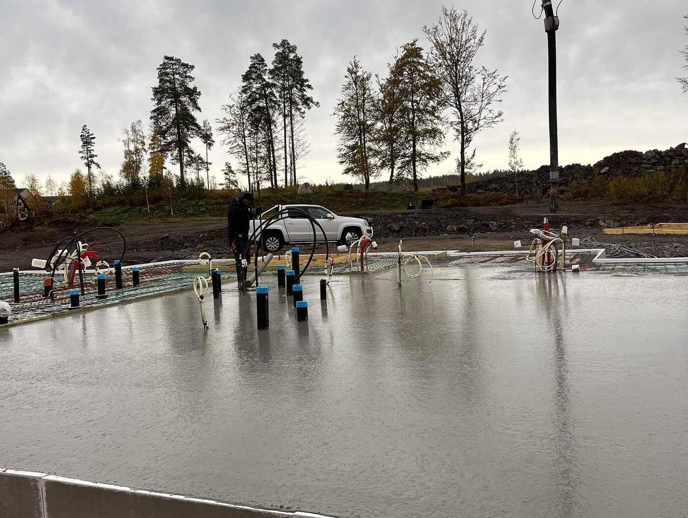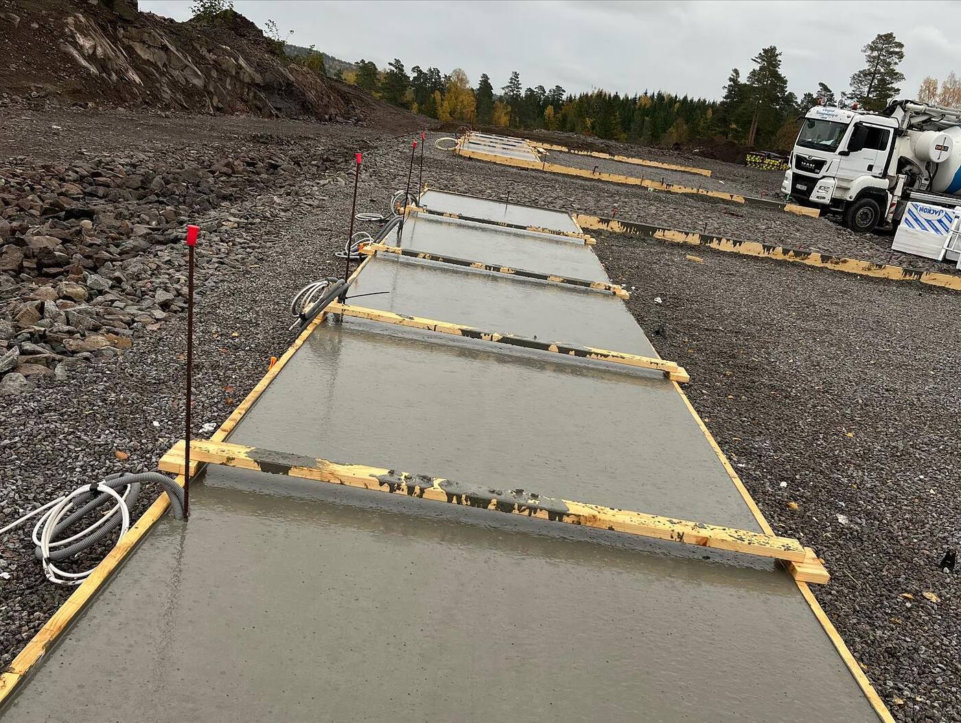 Idag fikk gutta støpt plata for firemannsboligen som @12treelementproduksjon har produsert, og blir krana på plass fortløpende! Snart er vi gang for fult